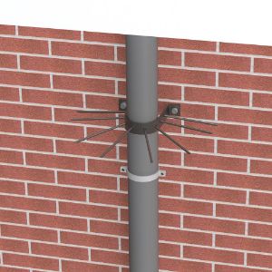 Anti klimbeugel met pennen (type vlak of versprongen) om aan de muur te bevestigen rond een regenpijp (inwendige breedte beugel 105 mm), ter voorkoming van het omhoog klimmen via de regenpijp.