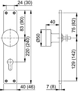 Aluminium-rechthoekig-binnendeur-langschildgarnituur,zwaar geperste uitvoering en vasteknop, zichtbare bevestiging, zonder schroeven.
