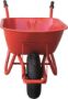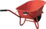 Model Biga. Uit één stuk geperste 1,2 mm dikke bak, rond buisframe, diameter 30x1,5 mm op kogelgelagerde kunststof wiel, afmeting 400x80 mm. Gelast en gemonteerd onderstel, bak met kip- en steunbeugel, verstevigingsbrug, extra brede draagbrug en slijtsloffen aan de poten. Met 4-ply luchtband, met binnenband. Inhoud 85 liter.