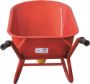 Model Biga. Uit één stuk geperste 1,2 mm dikke bak, rond buisframe, diameter 30x1,5 mm op kogelgelagerde kunststof wiel, afmeting 400x80 mm. Gelast en gemonteerd onderstel, bak met kip- en steunbeugel, verstevigingsbrug, extra brede draagbrug en slijtsloffen aan de poten. Met antilekband. Inhoud 85 liter.