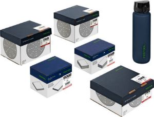 schuurmateriaal Granat STF D150/48 P80 GR, schuurmateriaal Granat STF D150/48 P120 GR, schuurmateriaal Granat STF D150/48 P180 GR, schuurspons 69x98x26 120 GR/6, Schuurspons 98x120x13 120 GR/6, drinkfles TFL-FT1 1L